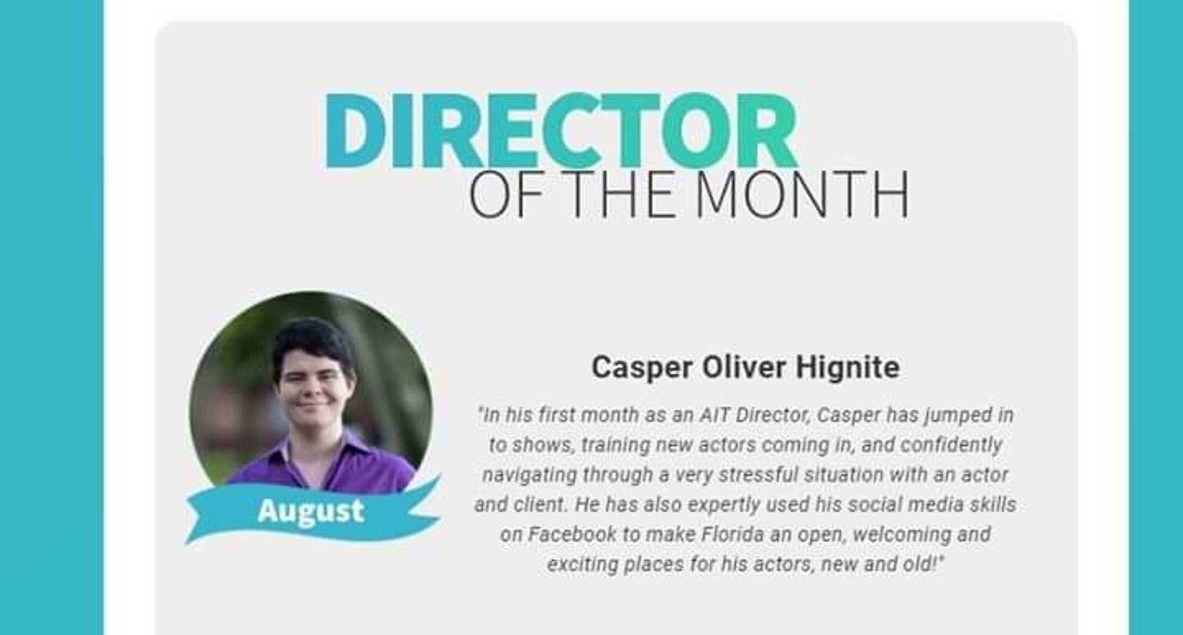 Currently an actor and troupe director for American Immersion Theater/The Murder Mystery Company where I perform in murder mystery parties of all kinds all over the state of Florida, also have performed in Georgia and Alaska! I also do casting and rehearsals for superhero/princess party events and other kinds of immersion theater experiences.